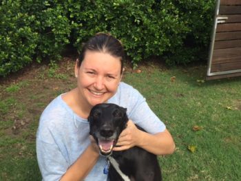 Jack the Greyhound zooms around his yard in Wynnum West as if he’s always had a happy home. The sun bounces off his sleek black coat as he races around for a few minutes, pausing occasionally to nudge one of his stuffed animals.